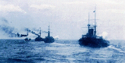 U海戦が始まってから1時間が経った。ロシア艦隊の第一線は戦線から離脱し、勇敢なロジェルトベンスキーは 重傷を負った。この夜一晩中、艦隊の4隻の戦艦、5隻の巡洋艦、および5隻の補助艦艇などはばらばらになって、海峡の奥に身を潜めていた。この他に4隻の戦艦と2隻の病院船は旗を降ろしていた。この決戦物語の最終章は、ロシア側にとって悲劇的な幕切れとなった。戦死および溺死者6000人、捕虜7000人以上、巨額の軍需物資を失い、もはや戦争の行方を変えることは不可能であった。それら全ては、ニコラス二世を動転させた、長く残酷な苦悩の始まりを意味した。 次のページへつづく |