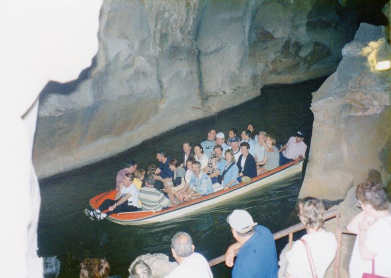 〈58〉船は鍾乳洞の洞窟の中を抜けて地上の川にでる。暑さ凌ぎには