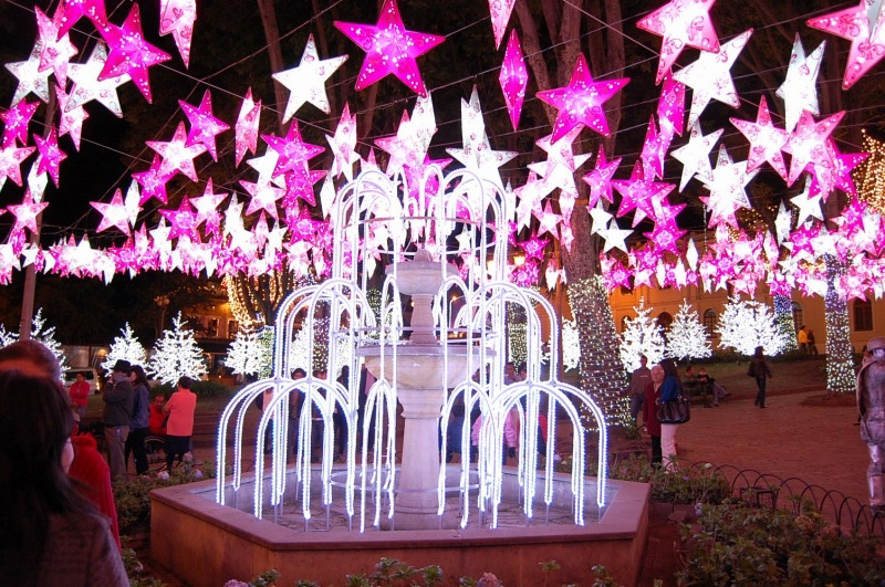 ボゴタのクリスマス・イブの公園の煌びやかなデコレーション
